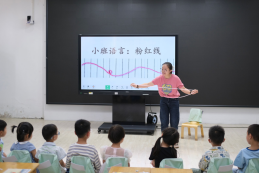 活动初,苏州市教育科学“十四五”规划课题《“儿童友好”幼儿对话生态圈的系统建构研究》课题组成员顾羽双组织了主题理论学习。首先,顾羽双老师结合文献内容,对开放式对话的情境创设、支持策略以及教师如何应对实践困境进行了理论学习。紧接着,顾羽双老师围绕观察量表中想象环境的创设、阶梯式语言框架的引导策略进行解读,帮助参会教师厘清思路,更有针对性地进行活动观摩。紧接着,执教教师陆蝶就小班语言活动《粉红线》进行说课,详细阐述了“材料引发想象——对话撬动思维——体验促进表达”的实施路径。
