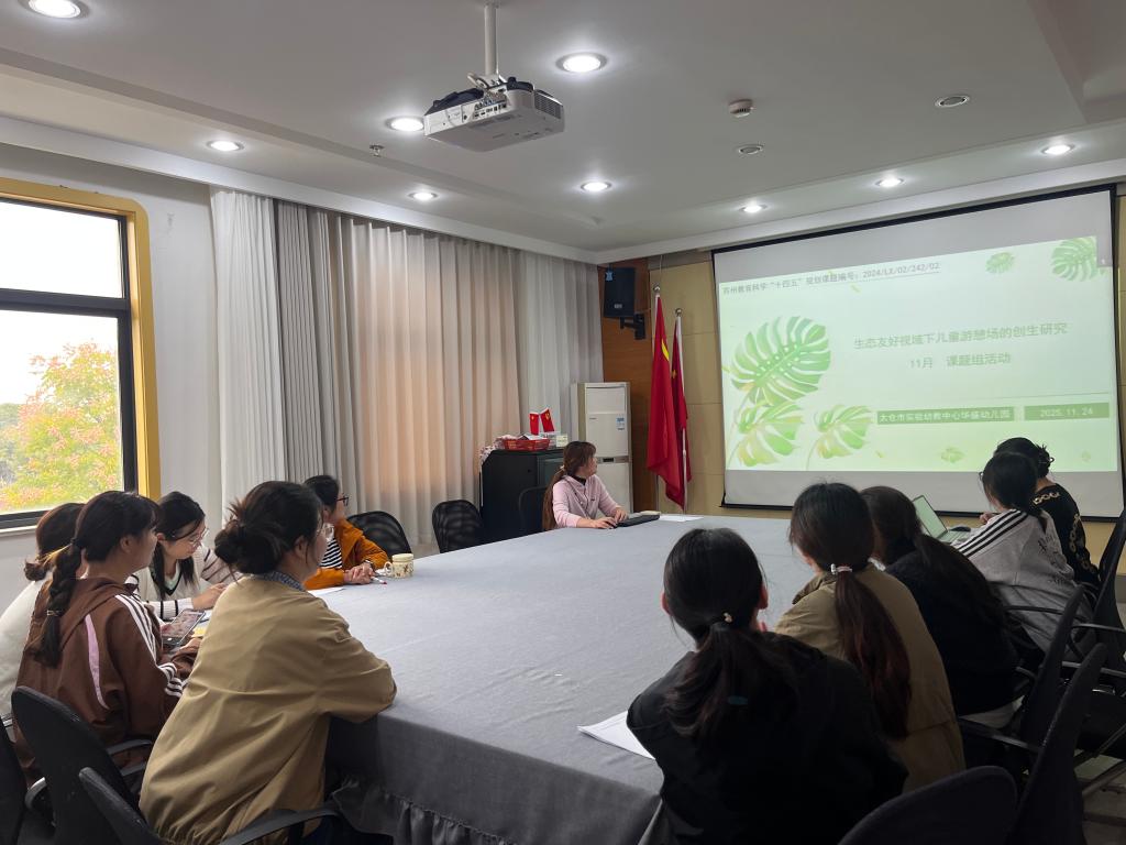 2025年11月26日,《生态友好视域下儿童游憩场的创生研究》课题组在幼儿园三楼会议室开展专题研讨,徐莺、朱涵、王怀兰、王佳楠、吴顾曦琳等核心成员围绕本次基于小果园与香草花园案例的框架建构进行研讨,探索生态启蒙系统化路径,破解活动与评价衔接、幼儿主体性凸显等核心问题。